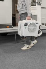 De Eurom AC2401 E is de oplossing voor een koele caravan of camper. Zo kan jij heerlijk slapen op vakantie. Met zijn bescheiden vermogen van 2300 BTU is de split airco geschikt voor de compactere caravans. De ingebouwde timer kan ingesteld worden van 0,5 tot 7,5 uur, en de temperatuur is goed te zien op het display. Dankzij het moderne uiterlijk misstaat de AC2401 E in geen enkele caravan. De AC2401 E heeft een voorgemonteerde afstandhouder en een verbeterde leidingdoorvoeren, waardoor deze split airco voor de caravan of camper makkelijk te installeren is.